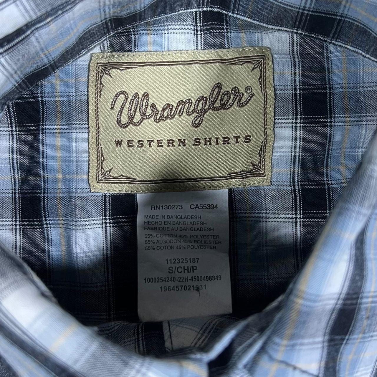Vintage Wrangler Cowboy Western Black Blue White Plaid Check Popper Long Sleeve Shirt