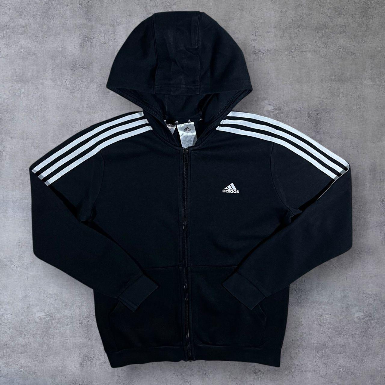 Adidas Three Stripe Mini Logo Classic Black Zip Hoodie