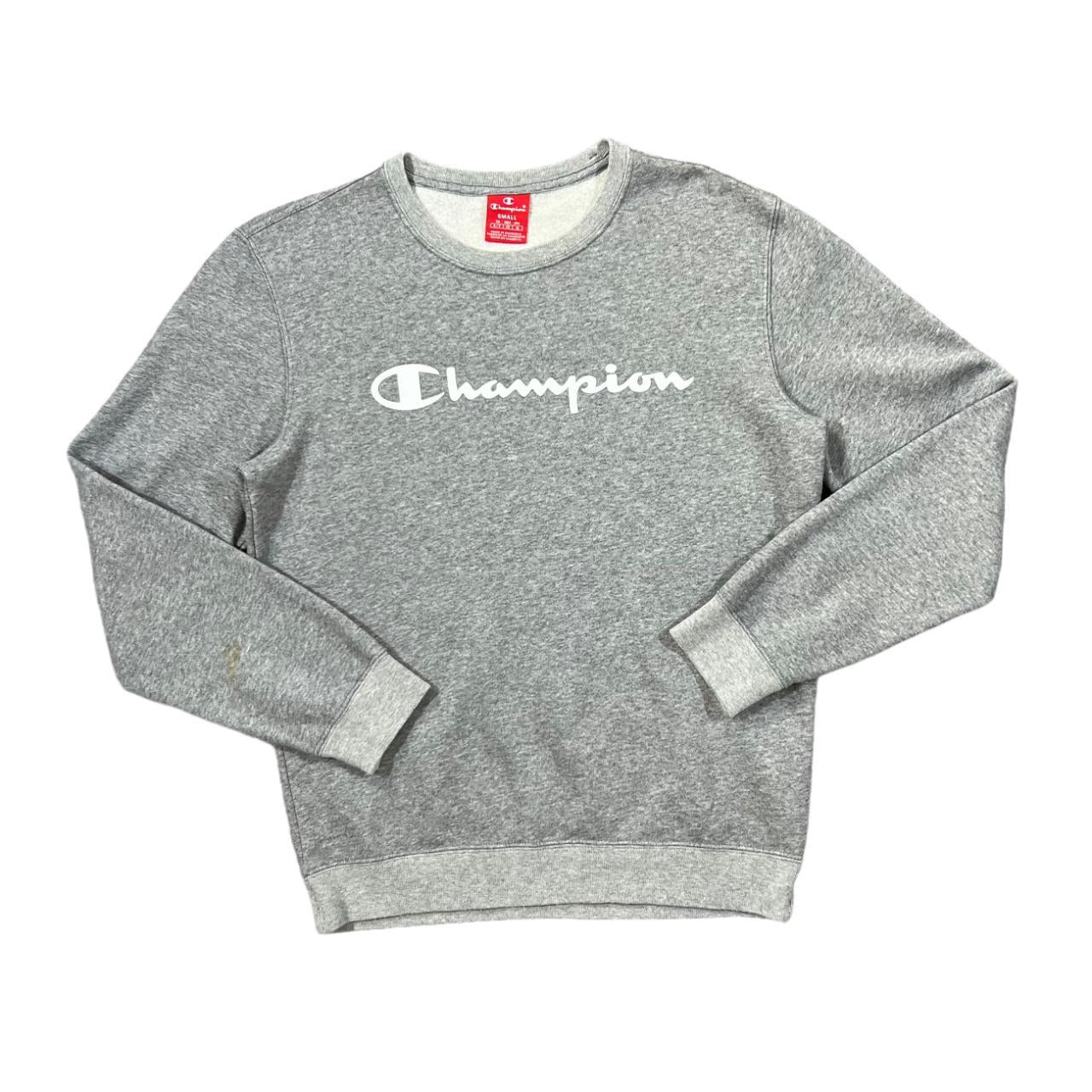 CHAMPION Classic Big Logo Spellout Graphic Grey Crewneck Sweatshirt
