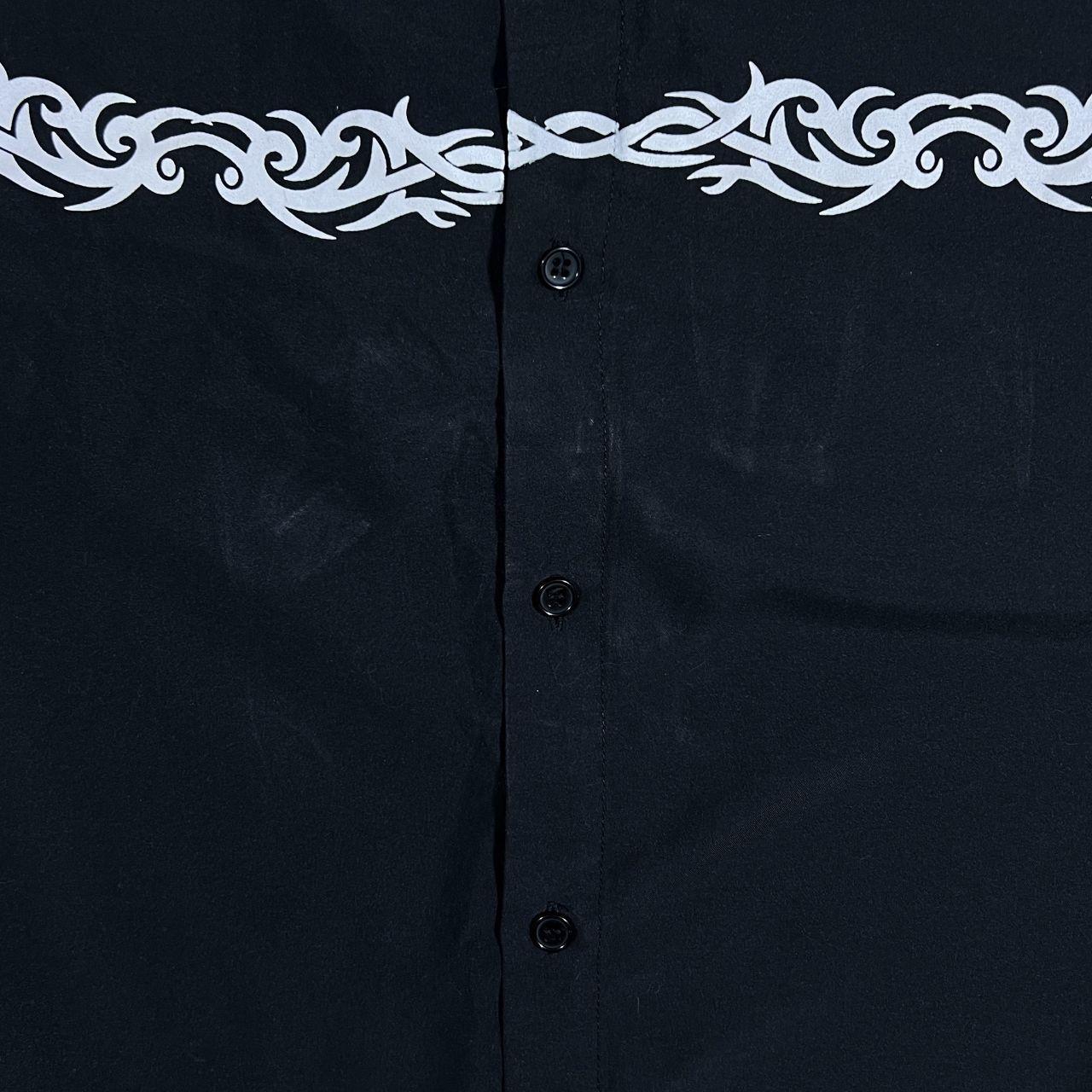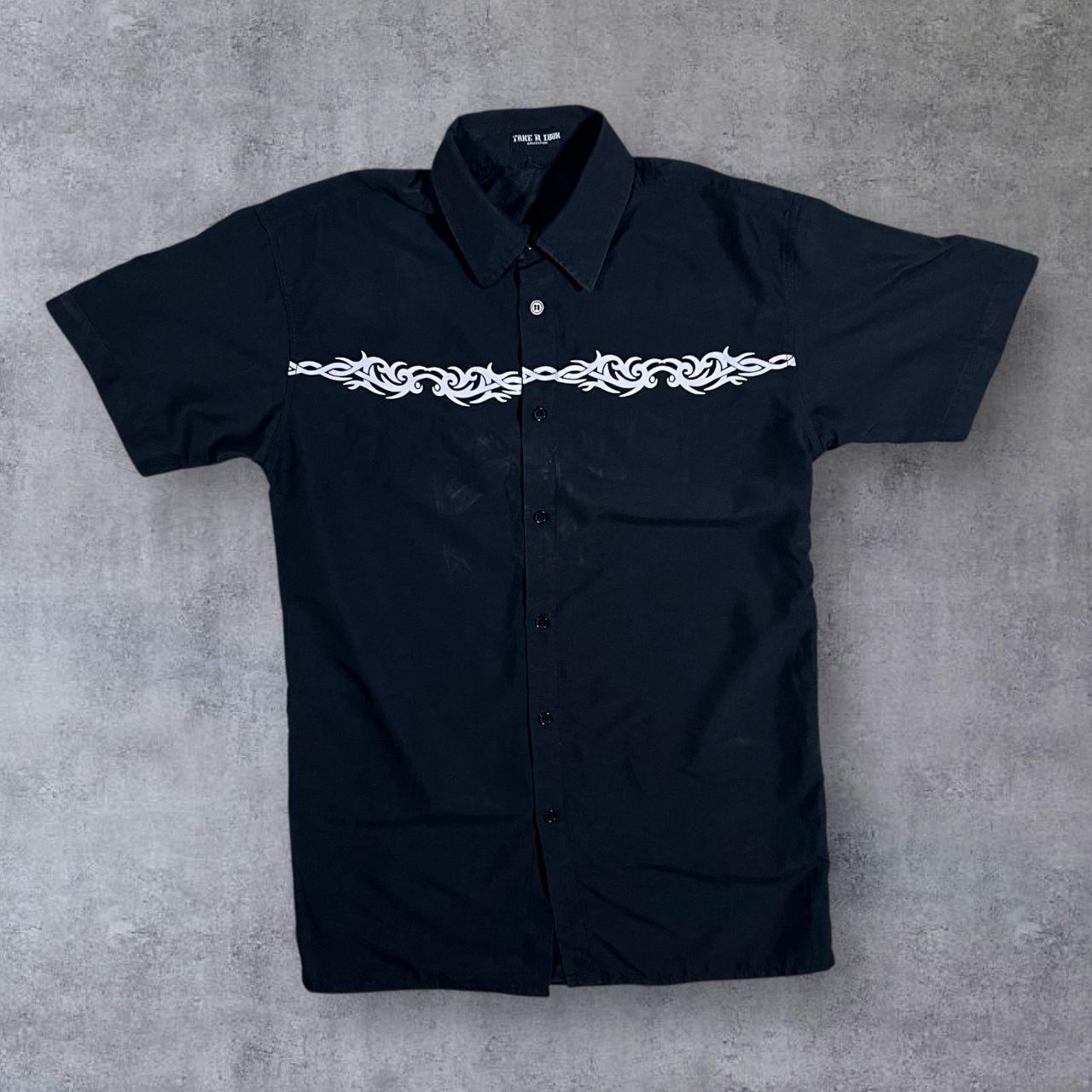 Early 00's Take A Look Gothic Y2K Tribal Patterned Graphic Black Short Sleeve Shirt