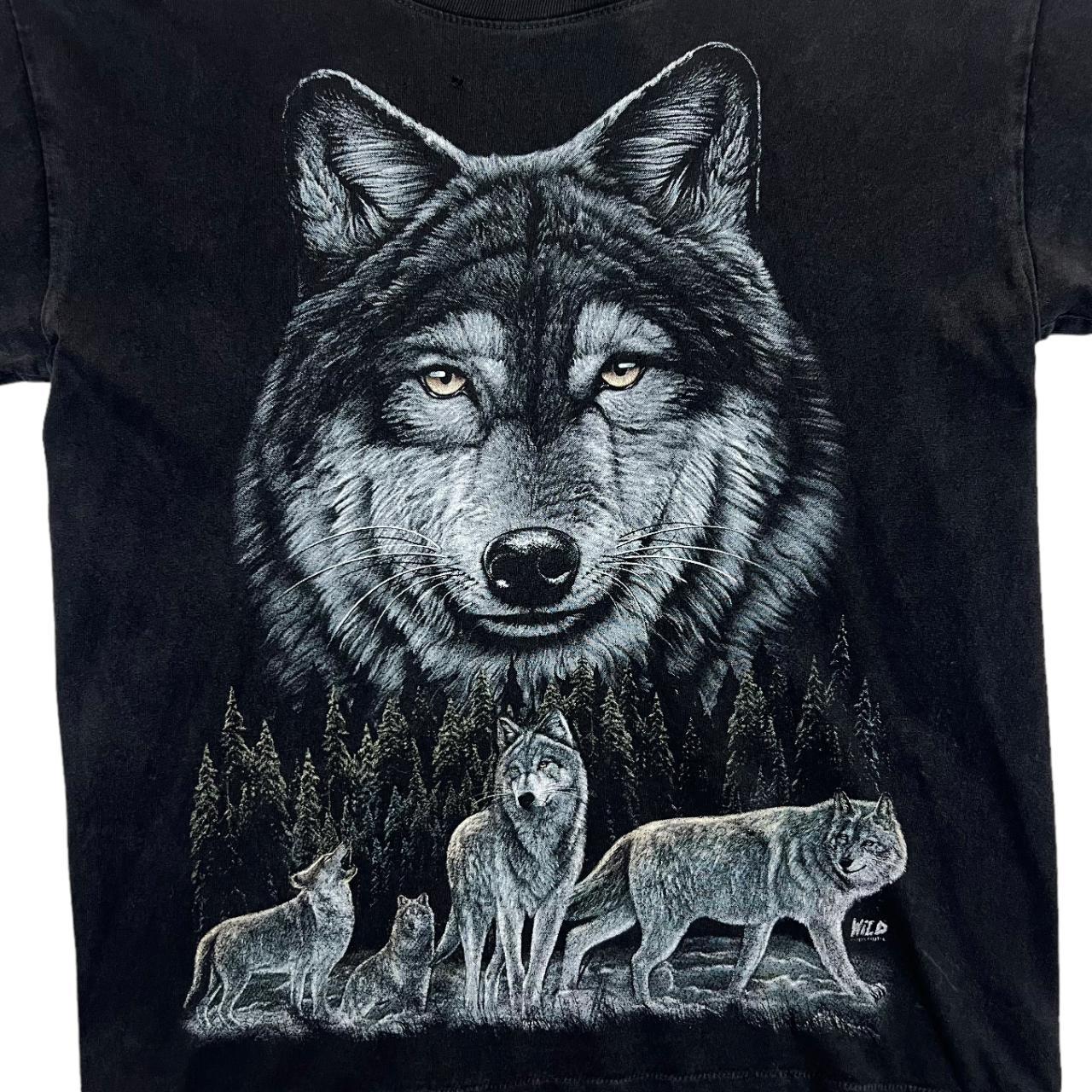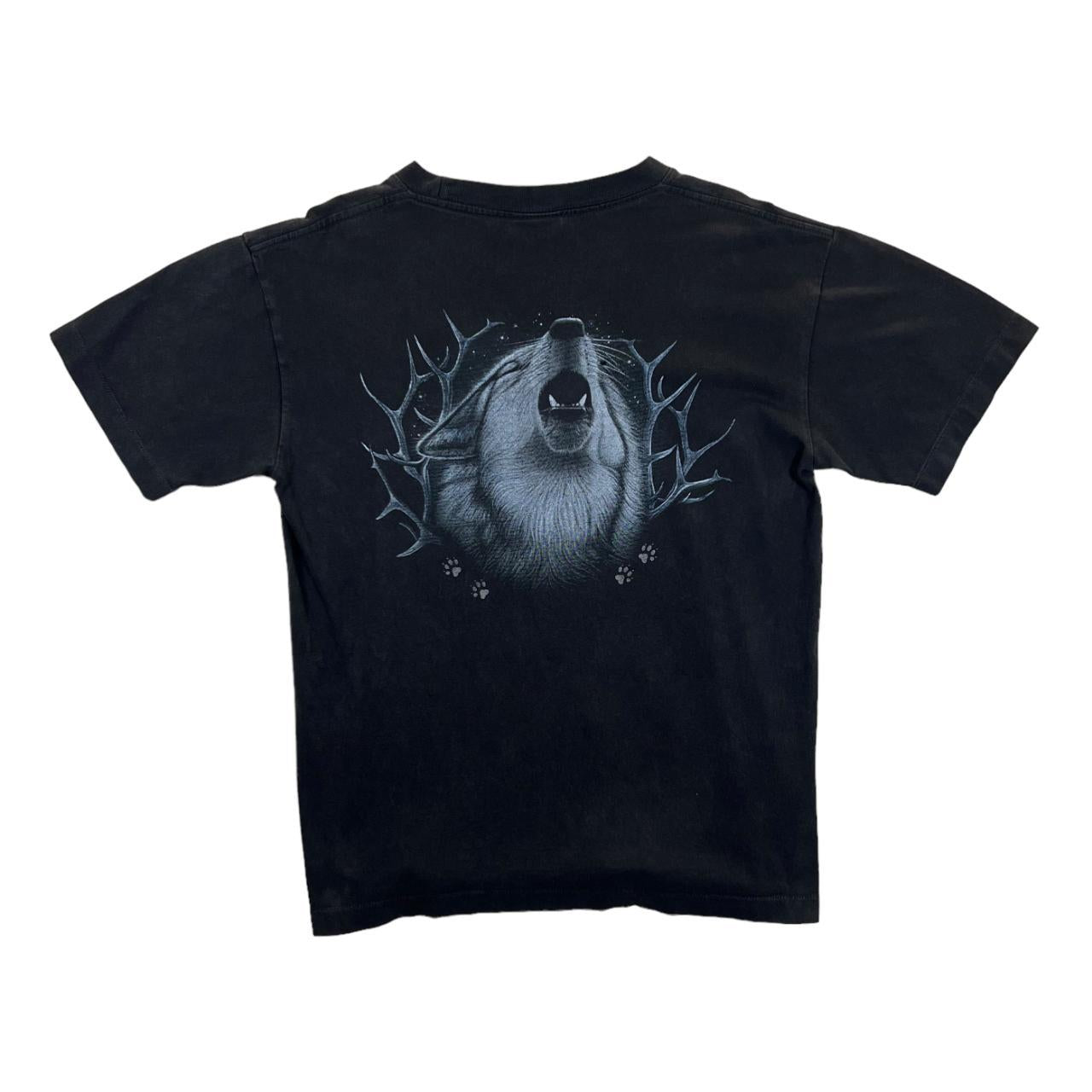 Early 00's WILD Gothic Wolf Animal Nature Wildlife Graphic Black T-Shirt