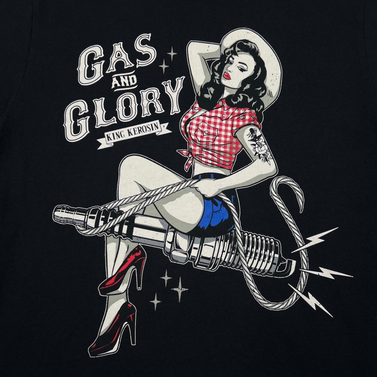 KING KEROSIN "Gas And Glory" Biker Trucker Rockabilly Spellout Graphic T-Shirt