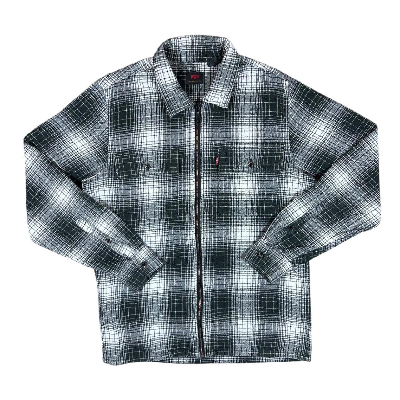 LEVI'S Red Tab Black White Plaid Check Zip Flannel Over ShirtSize: Size faded but fits Small/Medium (See measurements)Colour: Black/White Mix CheckDetail: Button chest pocketsCondition: Light general wear as expectedMeasurements: Pit to Pit: 20"Length: 27.5"Shoulder to Cuff: 24"#11921
