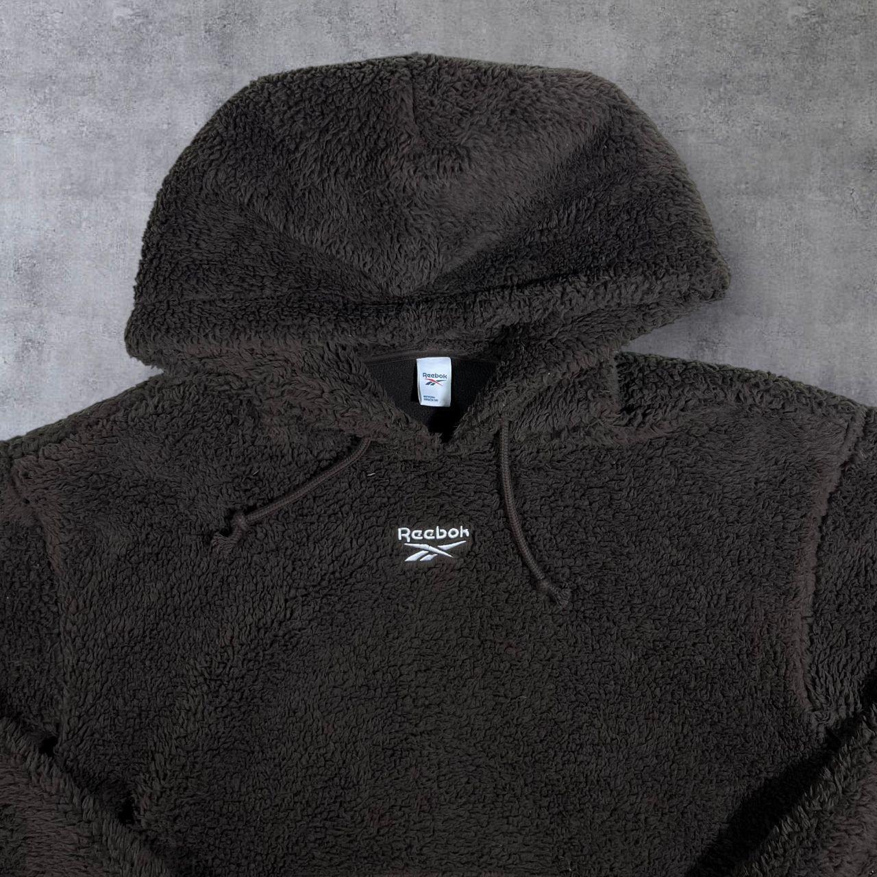 Reebok Embroidered Mini Logo Brown Sherpa Fleece Pullover Hoodie