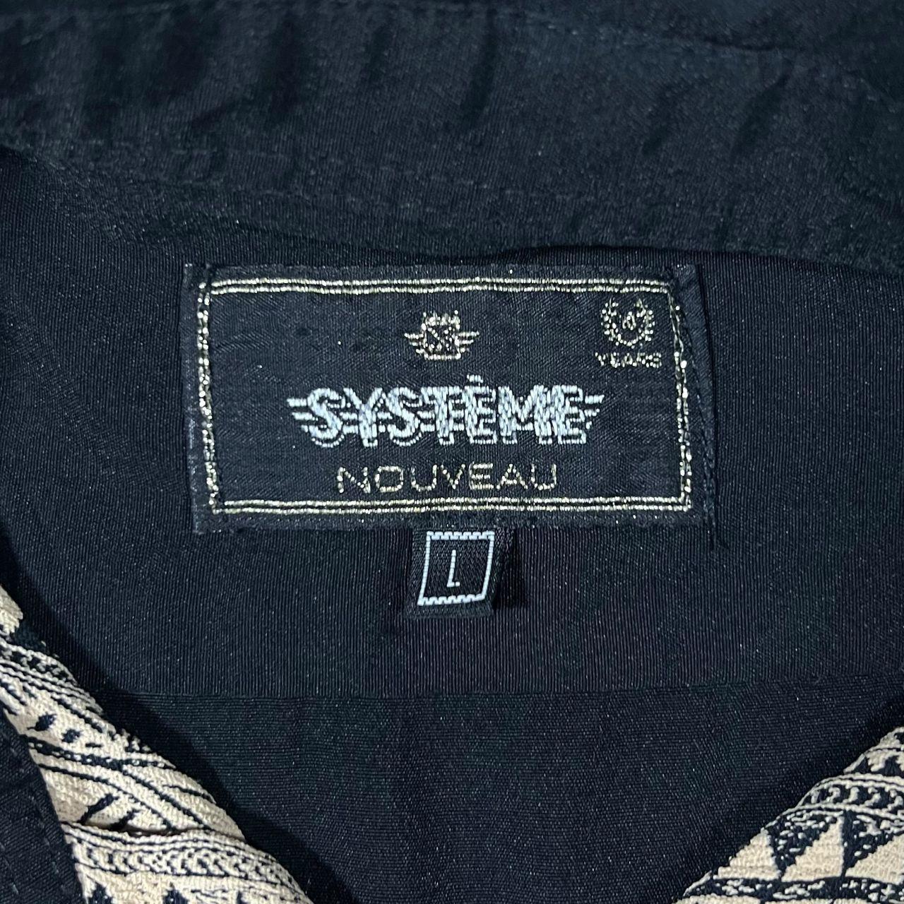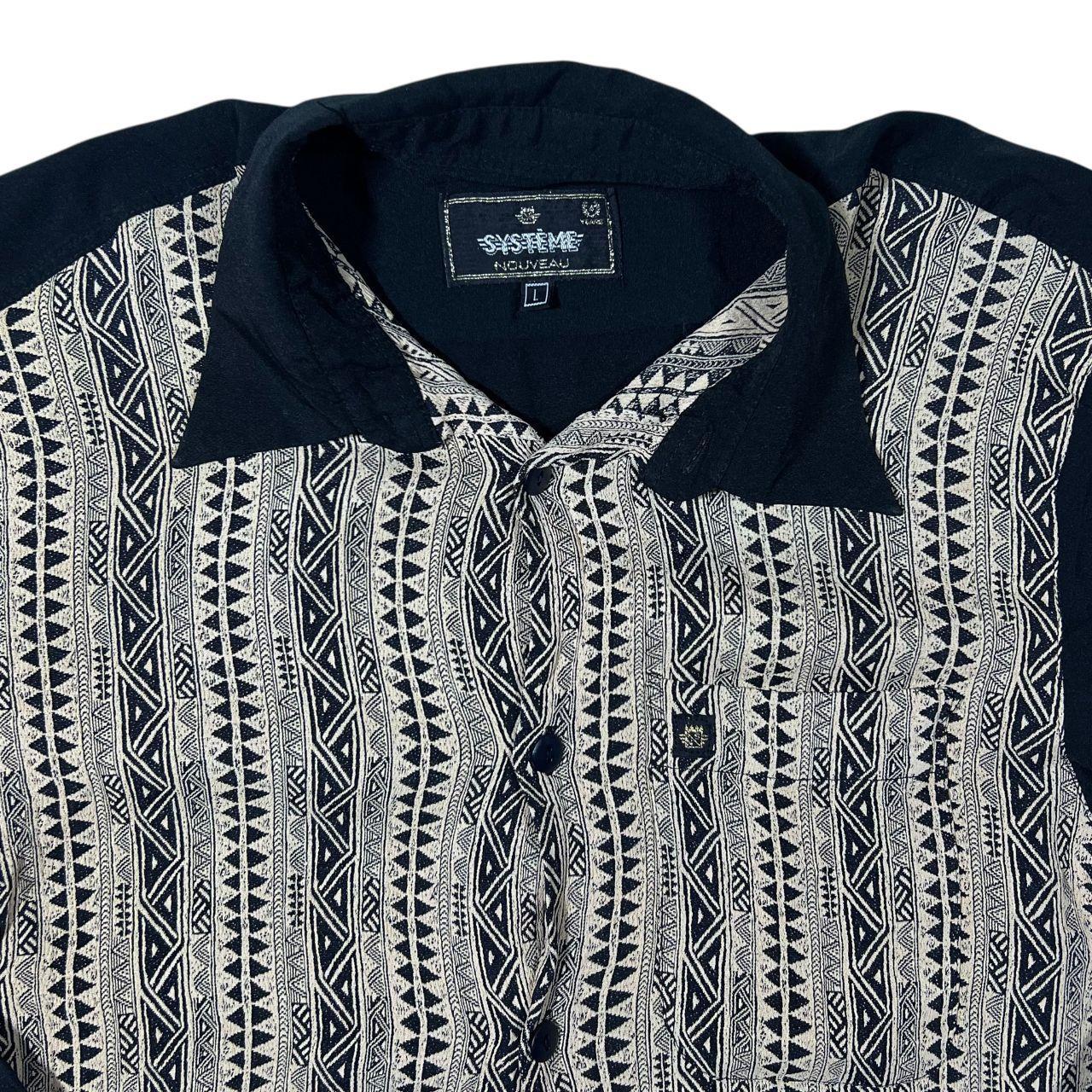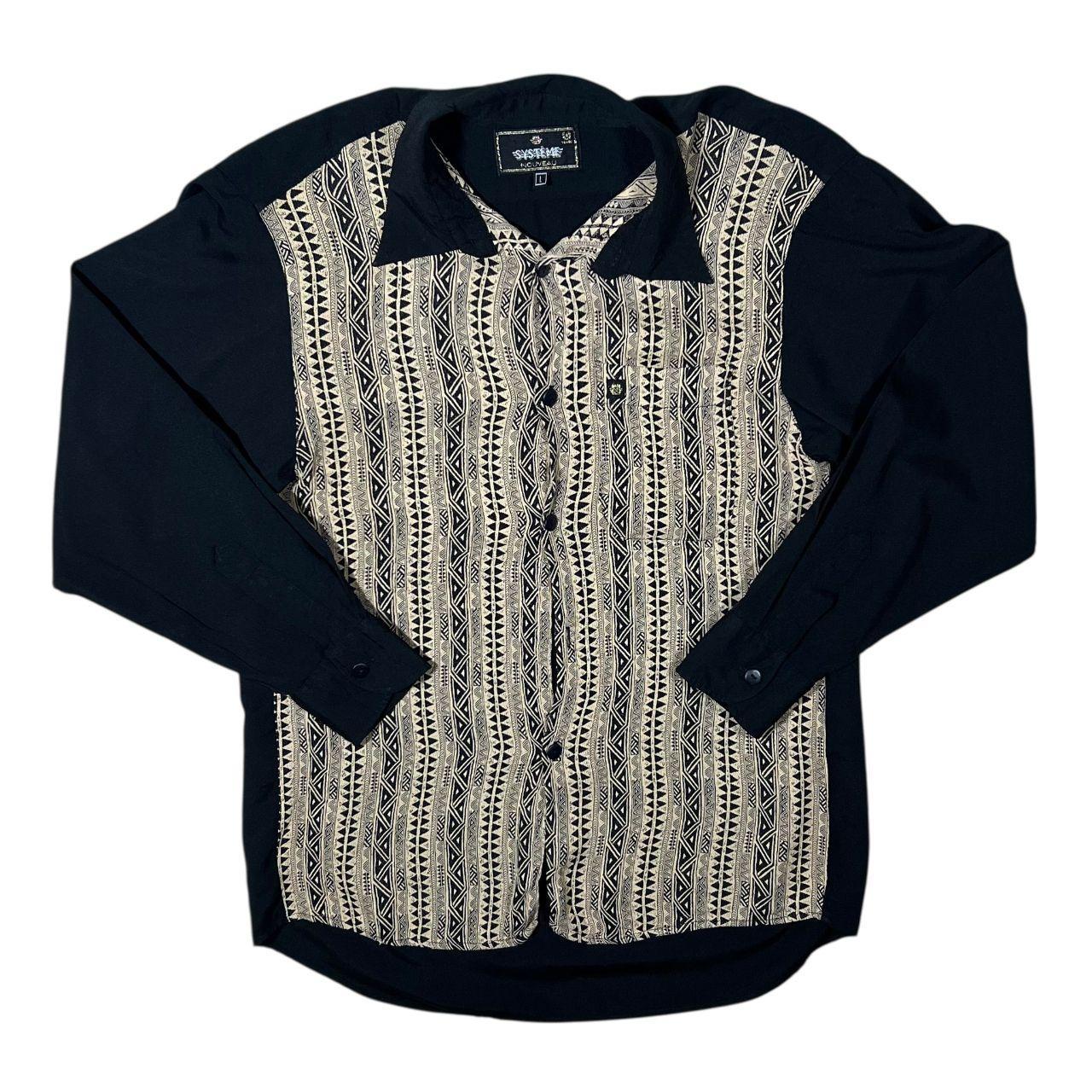Vintage Systeme Nouveau Black Beige Abstract Patterned Long Sleeve Viscose Shirt