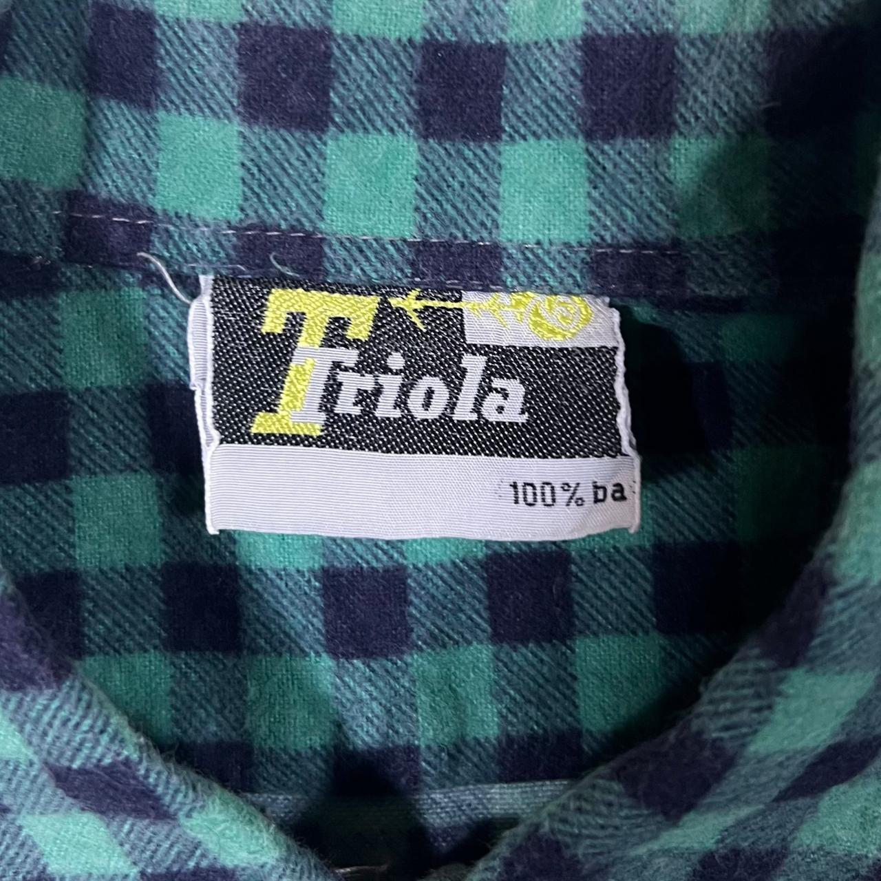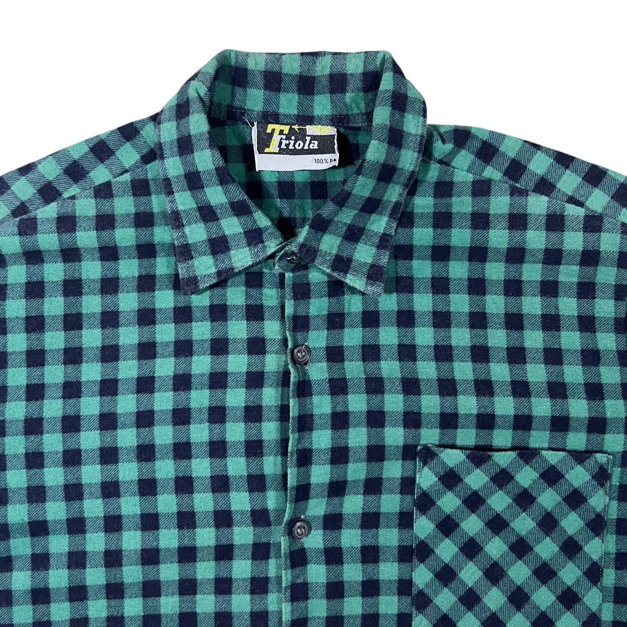 Vintage Triola Green Black Emo Plaid Check Long Sleeve Cotton Flannel Shirt