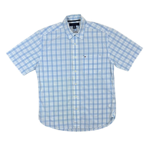 TOMMY HILFIGER Mini Pocket Logo Plaid Check Short Sleeve Cotton Shirt