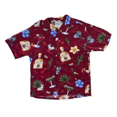Early 00's BIG DOGS Hawaiian Tropical Map Patterned Polyester Rayon Open Collar Short Sleeve Shirt