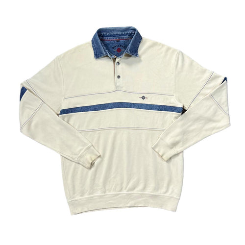 Vintage BAILEYS Mini Logo Contrast Denim Collar Long Sleeve Polo Shirt