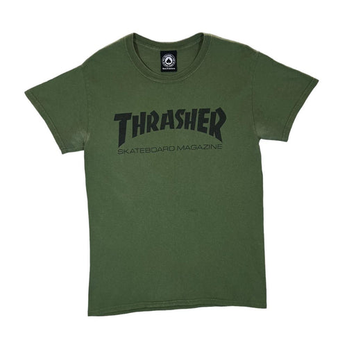 THRASHER MAGAZINE Classic Skater Logo Spellout Khaki Green Graphic T-Shirt