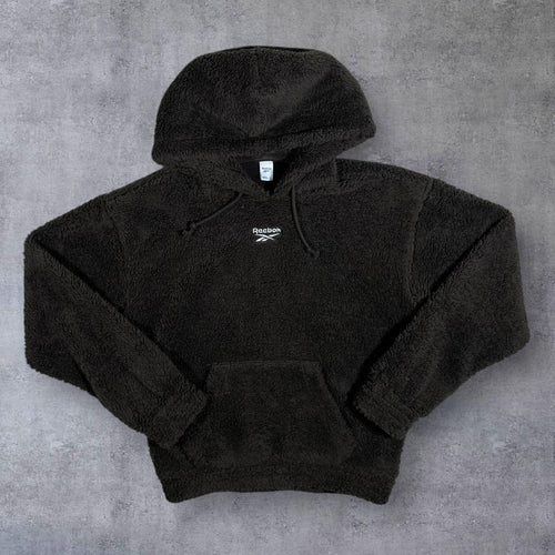 Reebok Embroidered Mini Logo Brown Sherpa Fleece Pullover Hoodie