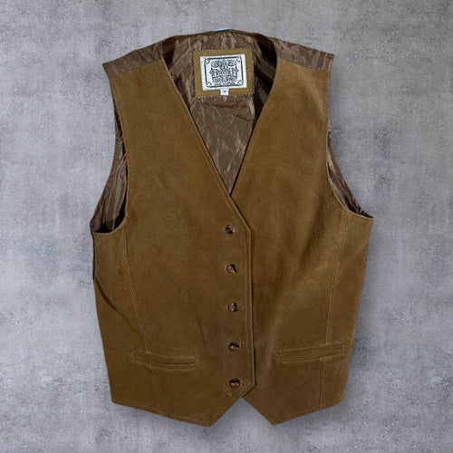 Vintage New Frontier Western Brown Real Suede Leather Button Waistcoat Vest