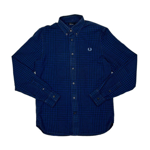 FRED PERRY Classic Embroidered Mini Laurel Crest Logo Checked Long Sleeve Button-Up Shirt