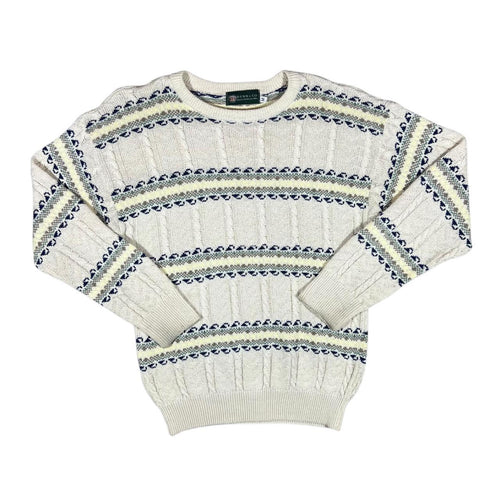 Vintage DUNN & CO. Grandad Patterned Cable Knit Crewneck Jumper Sweater