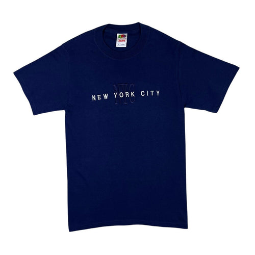 Early 00's NEW YORK CITY NYC Embroidered Souvenir Spellout Navy Blue T-Shirt