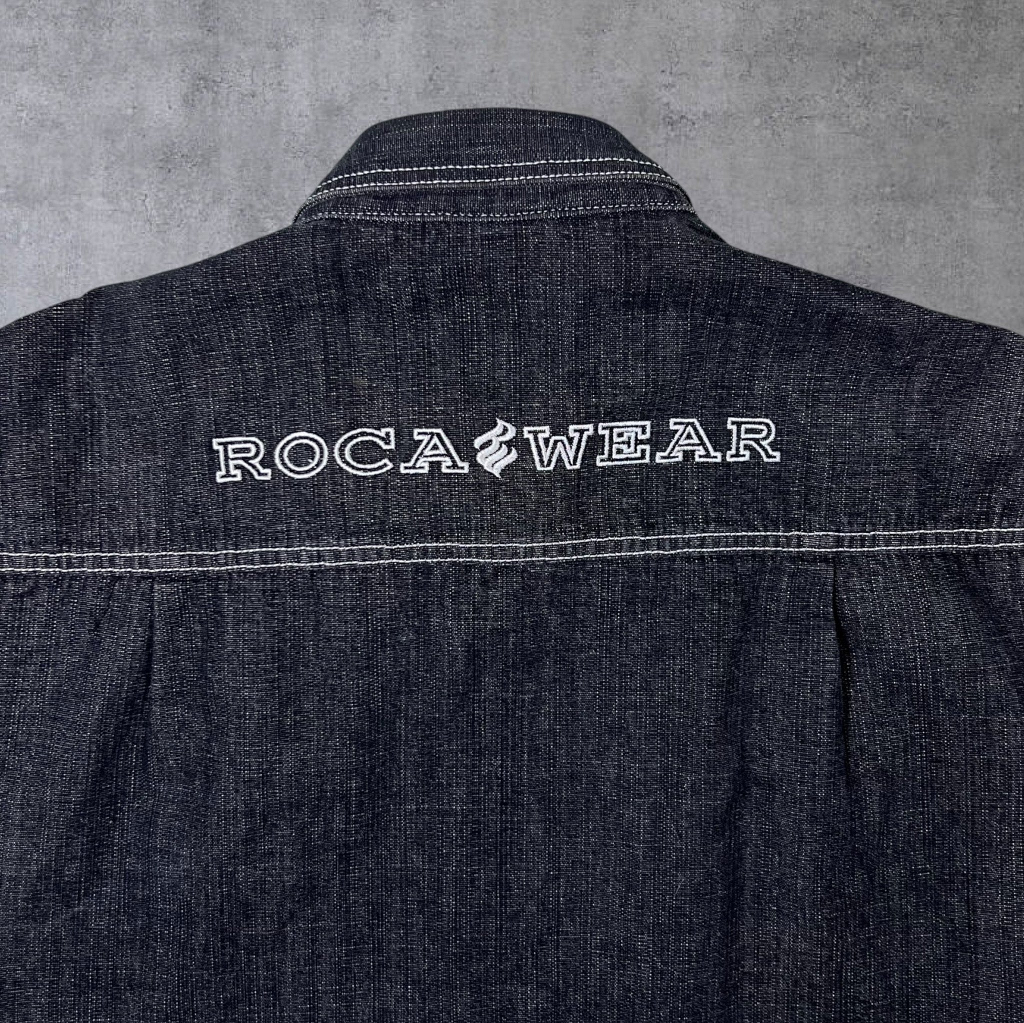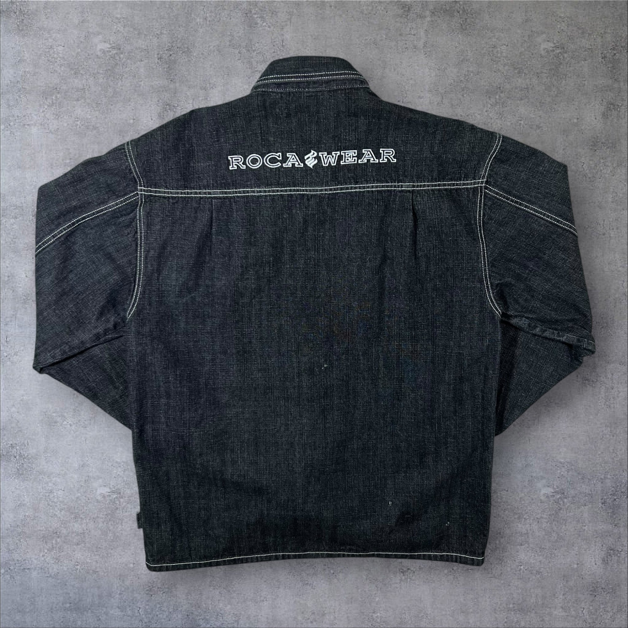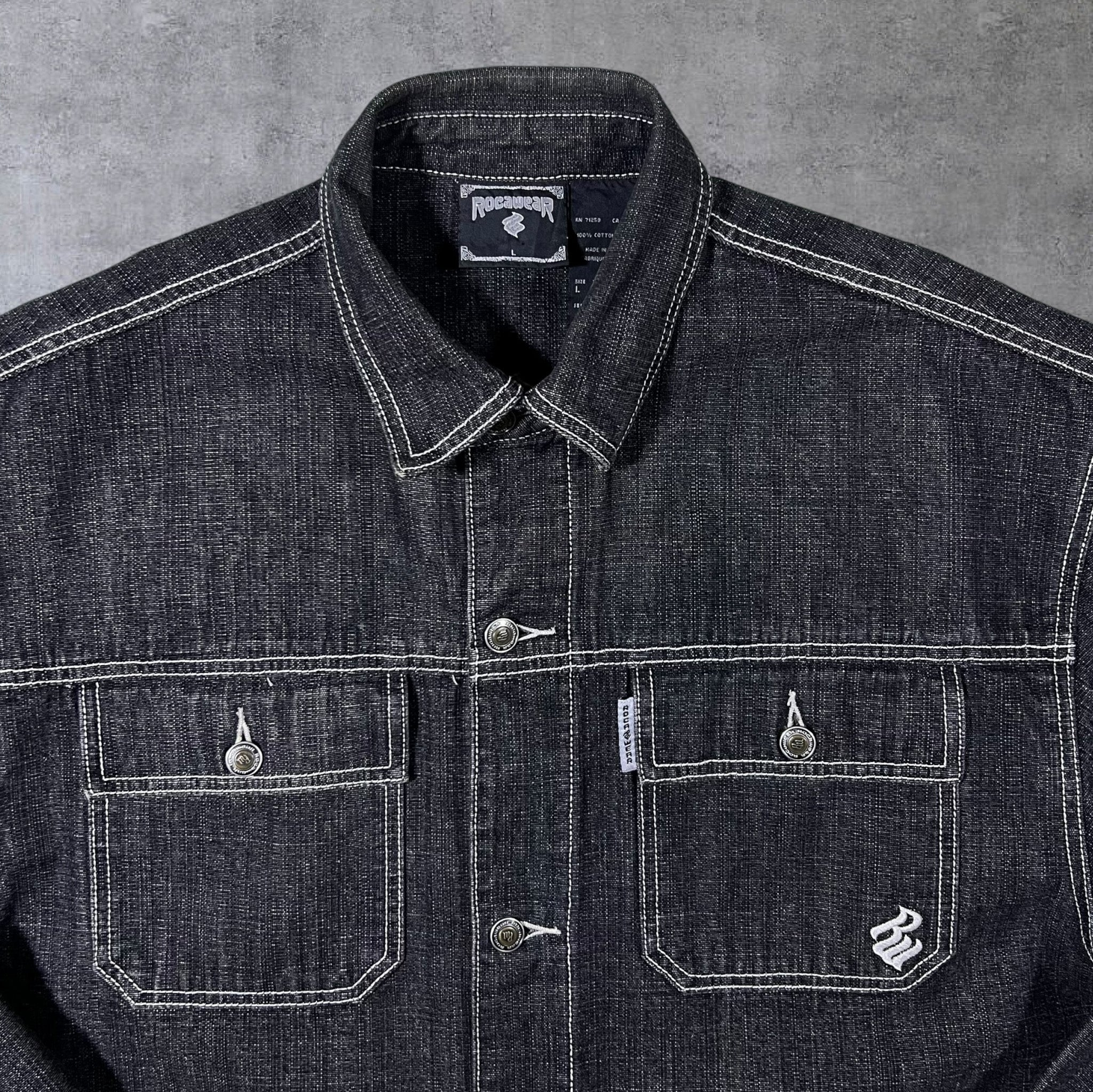 Early 00's Rocawear Y2K Hip Hop Raw Dark Grey Denim Button Jacket