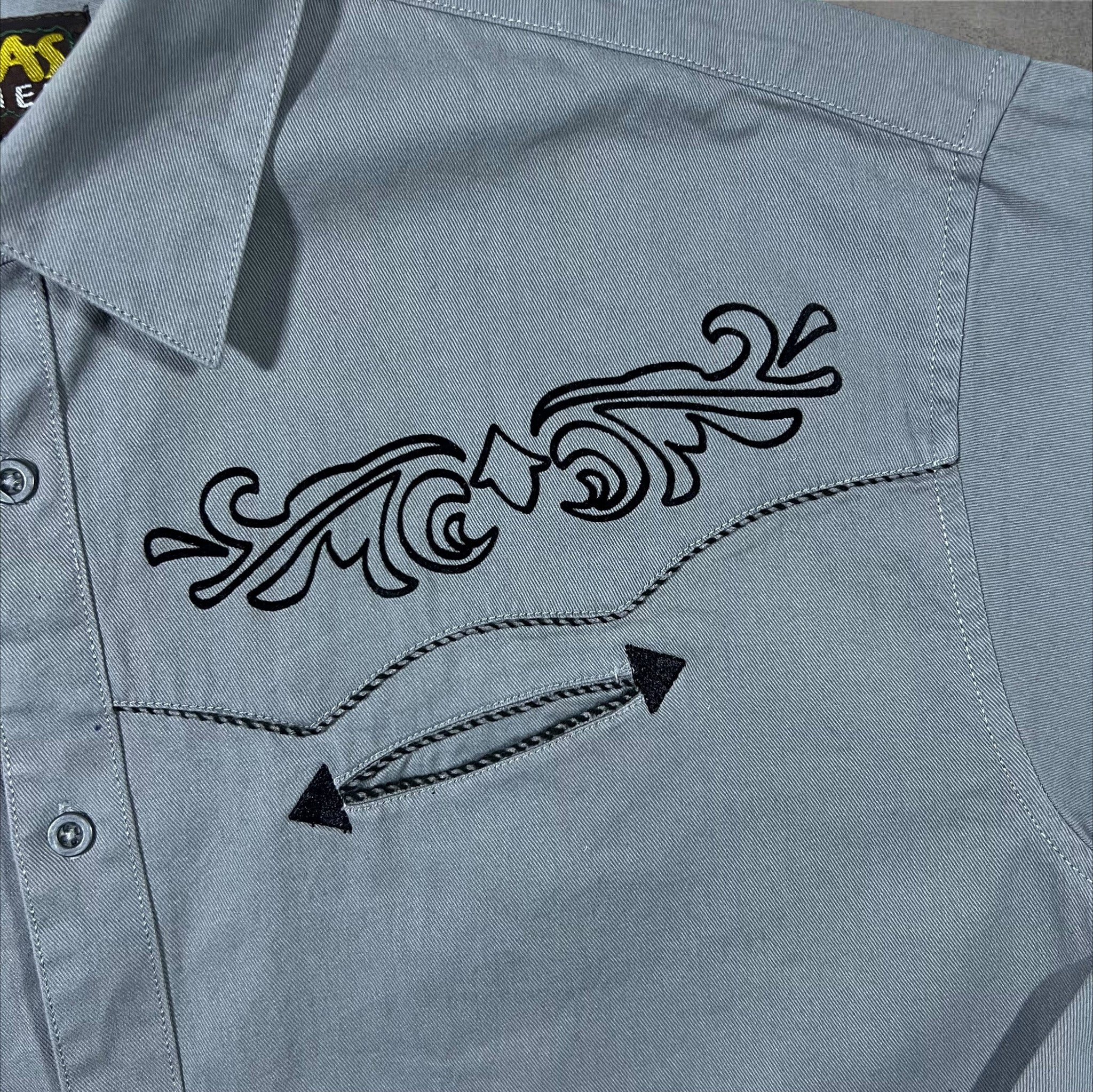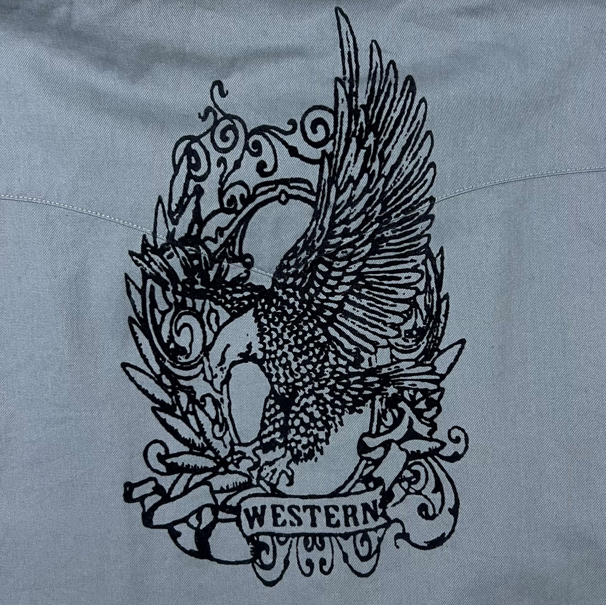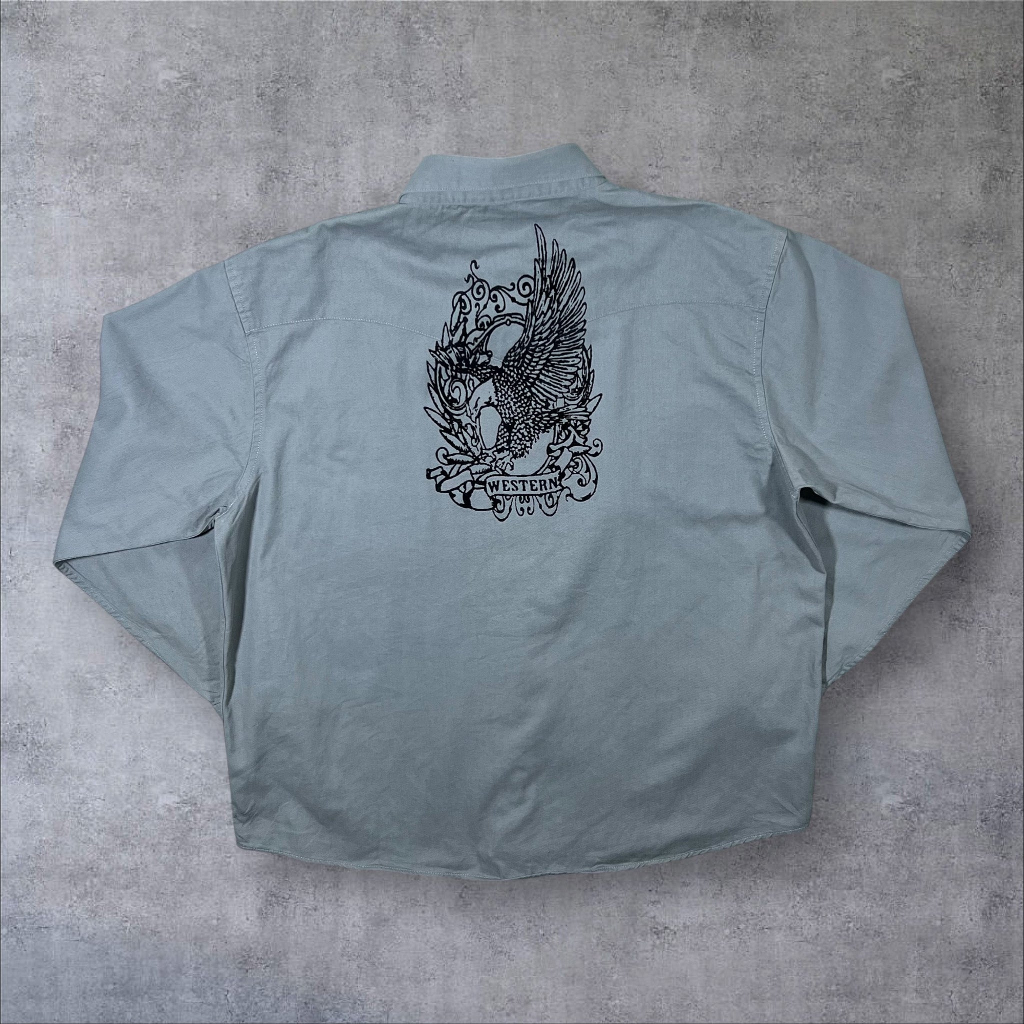 Early 00's Atlas For Men "Western" Cowboy Grey Cotton Long Sleeve Shirt