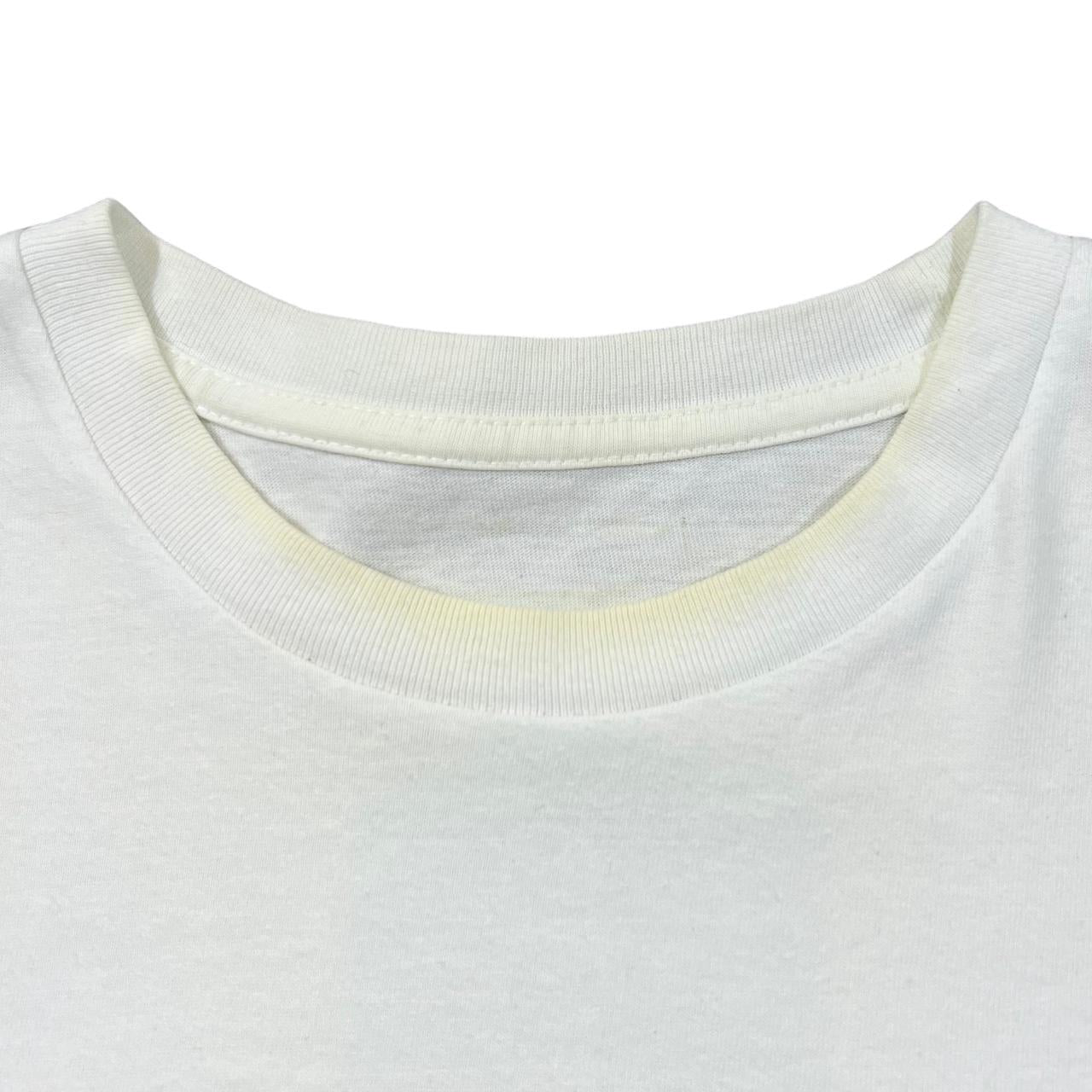 Size: Label faded but fits Large (See measurements) Colour: White Detail: Graphic souvenir spellout print to front Condition: Light general wear as expected with minor yellowing to neckline pictured