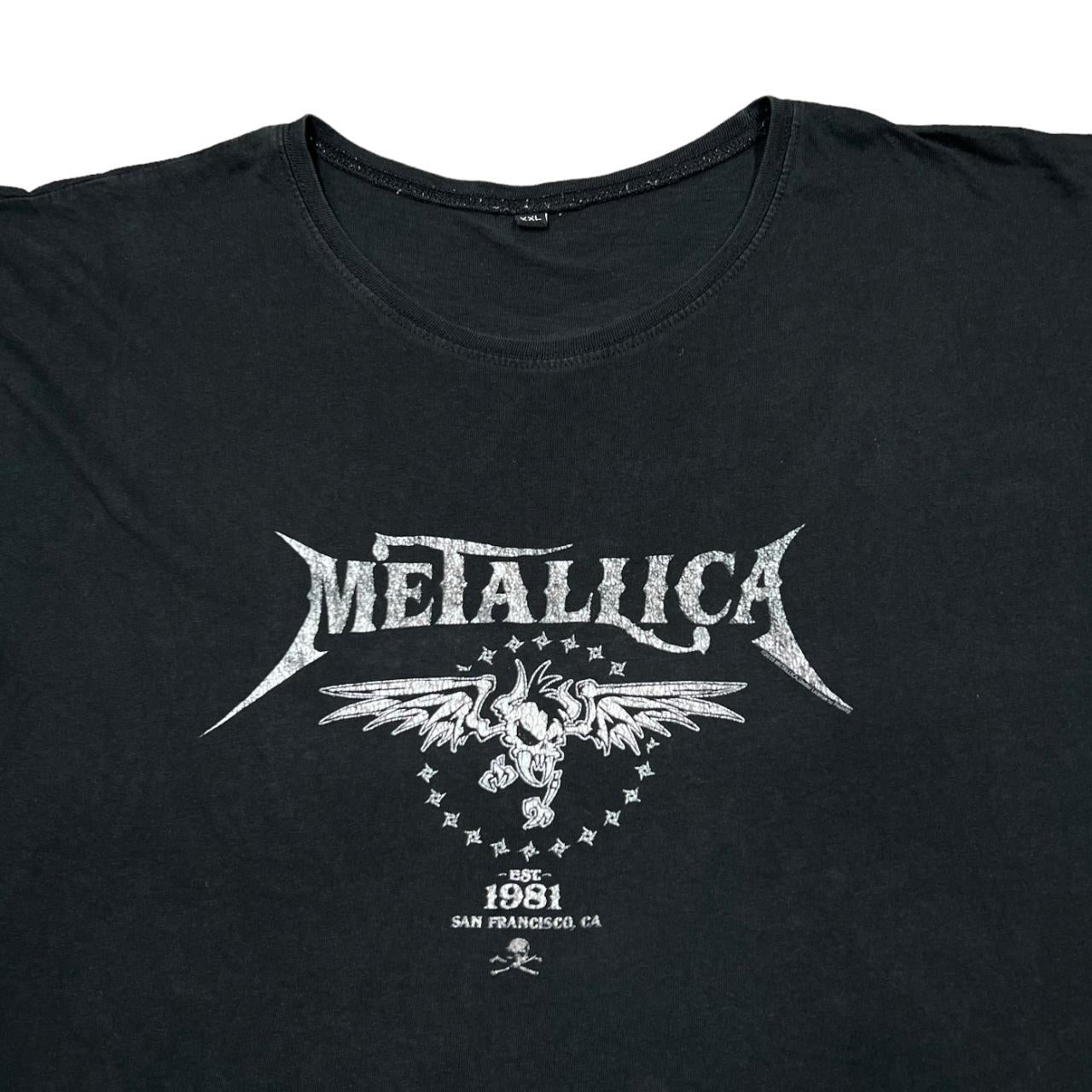 METALLICA Classic Logo Spellout Graphic Thrash Heavy Metal Band Rolled Sleeve T-Shirt