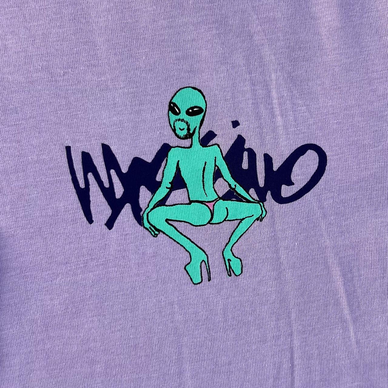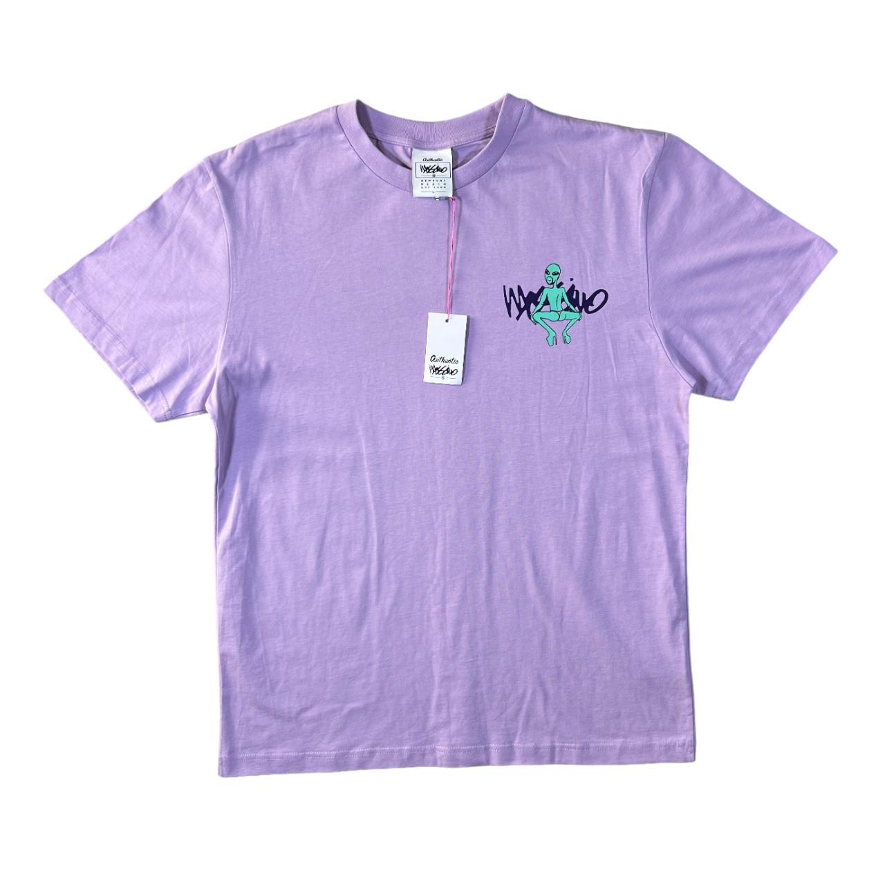 MOSSIMO Logo Spellout Alien Cartoon Character Lilac Purple Graphic T-Shirt
