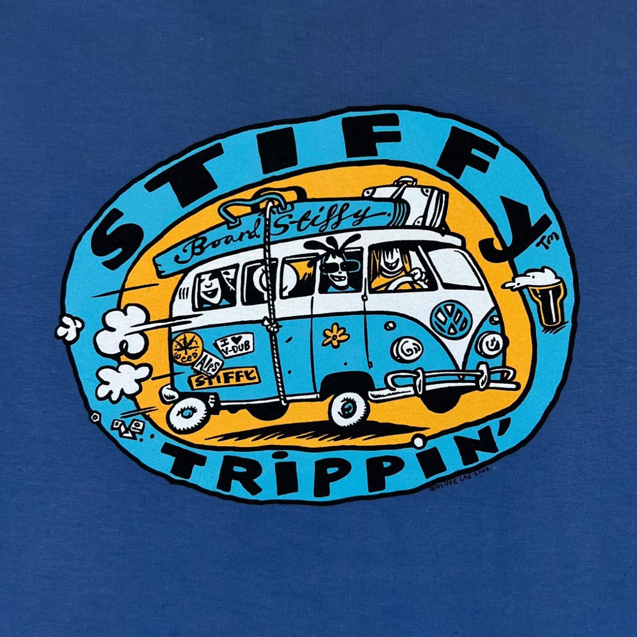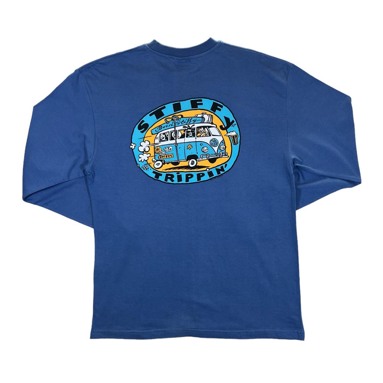STIFFY "Stiffy Trippin" Surfer Skater Logo Spellout Graphic Blue Long Sleeve T-Shirt