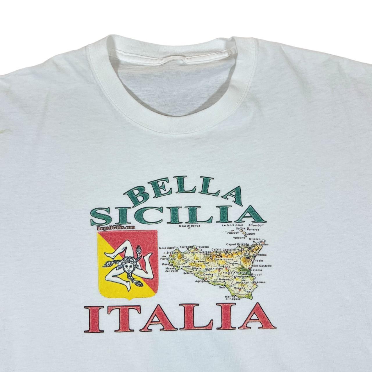 Vintage BELLA SICILIA ITALIA Souvenir Spellout Graphic White T-Shirt