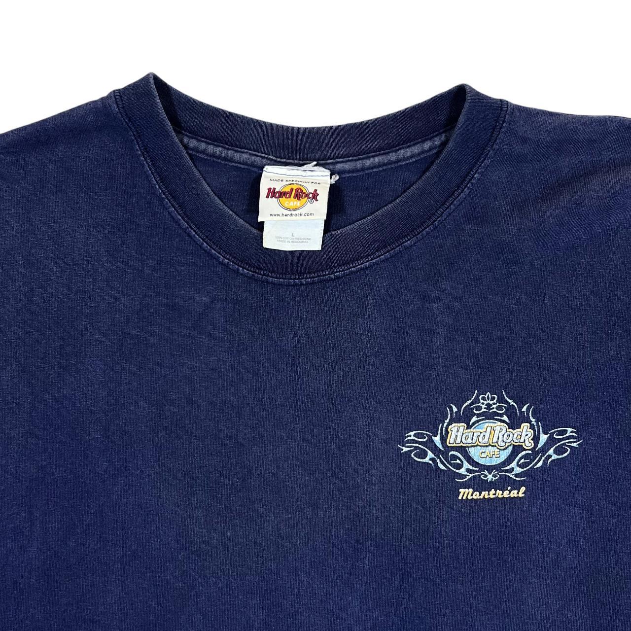 Vintage HARD ROCK CAFE "Montreal" Souvenir Logo Spellout Graphic Navy Blue T-Shirt