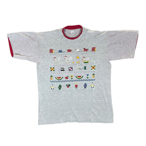 Vintage 90's A FRIENDLY FARM Cottage Core Novelty Spellout Graphic Single Stitch T-Shirt