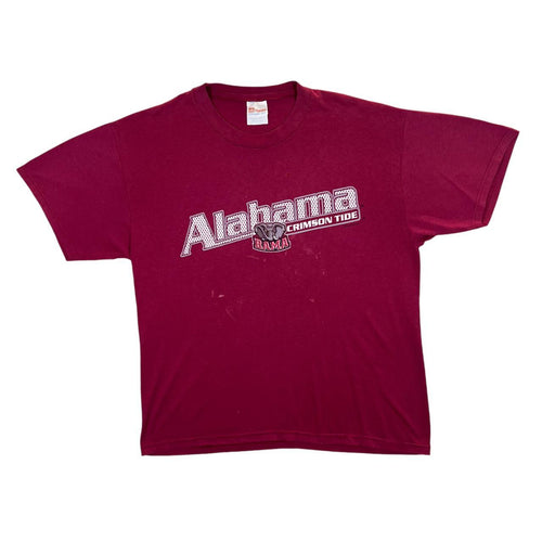 Early 00's Hanes ALABAMA CRIMSON TIDE College Logo Spellout Graphic Distressed Red T-Shirt