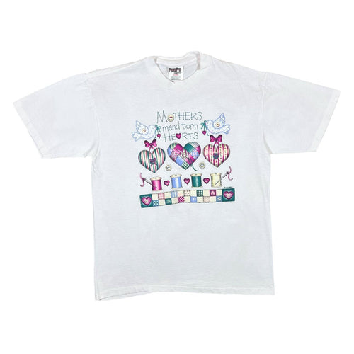 Vintage 90's Oneita MOTHERS MEND TORN HEARTS Cottage Core Novelty Graphic Single Stitch T-Shirt