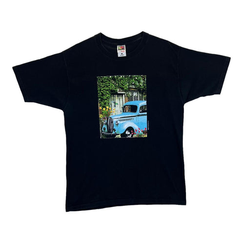 Vintage CALICO SPORTSWEAR (2000) Car Nature Cottage Scene Graphic Black T-Shirt