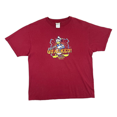 Early 00's DISNEY STORE "Totally Quacked!" Donald Duck Graphic Short Sleeve Red T-Shirt