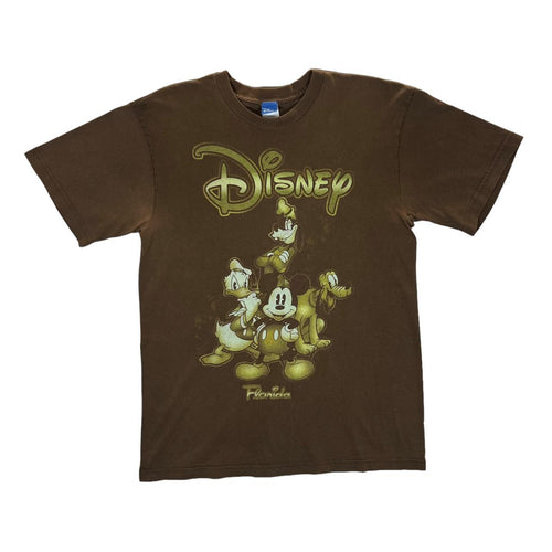 Early 00's DISNEY "Florida" Character Souvenir Spellout Graphic Brown T-Shirt