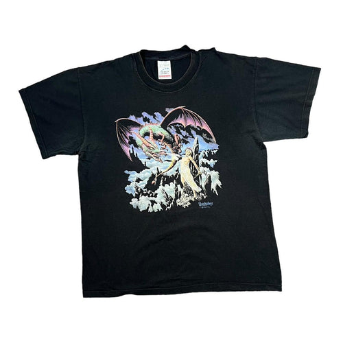 Vintage Screen Stars (1999) QUICKSILVER Gothic Fantasy Dragon Graphic Black Short Sleeve T-Shirt