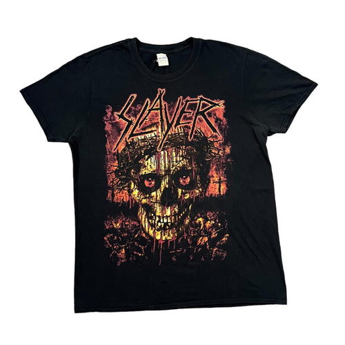 SLAYER Skull Crown Of Thorns Spellout Graphic Thrash Heavy Metal Band T-Shirt