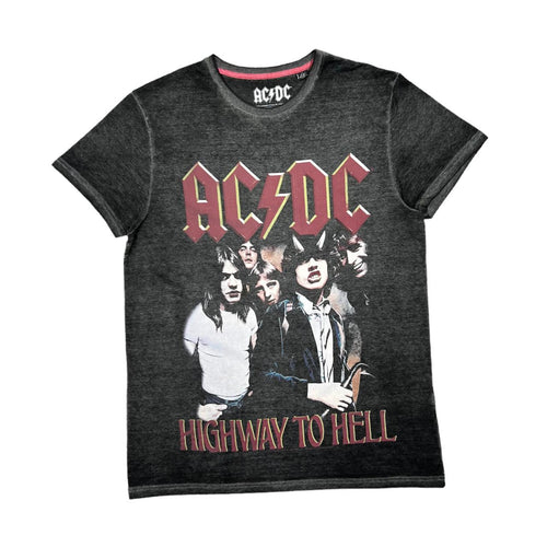 AC/DC "Highway To Hell" Lightweight Distressed Faded Effect Hard Rock Band Graphic T-Shirt