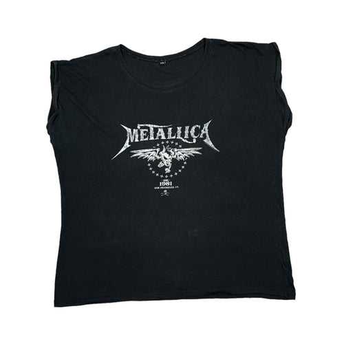 METALLICA Classic Logo Spellout Graphic Thrash Heavy Metal Band Rolled Sleeve T-Shirt