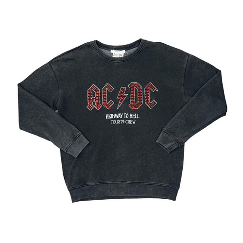 Mango x AC/DC "Highway To Hell Tour '79 Crew" Diamante Graphic Hard Rock Band Crewneck Sweatshirt
