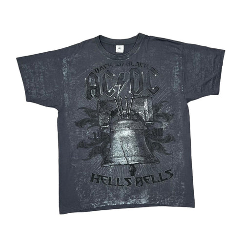 AC/DC "Hells Bells" Distressed Style Spellout Graphic Hard Rock Band T-Shirt