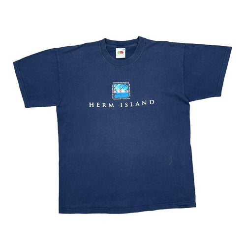 Early 00's HERM ISLAND Sailing Ocean Souvenir Spellout Graphic T-Shirt