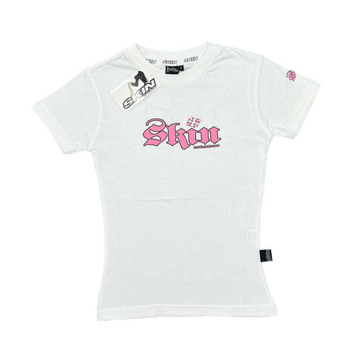 Early 00's SKIN INDUSTRIES Gothic Biker Tattoo Y2K Logo Spellout Graphic T-Shirt