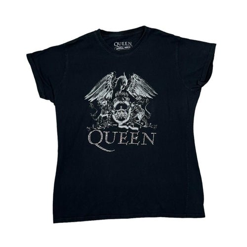 QUEEN Classic Logo Spellout Diamante Graphic Glam Hard Rock Band T-Shirt