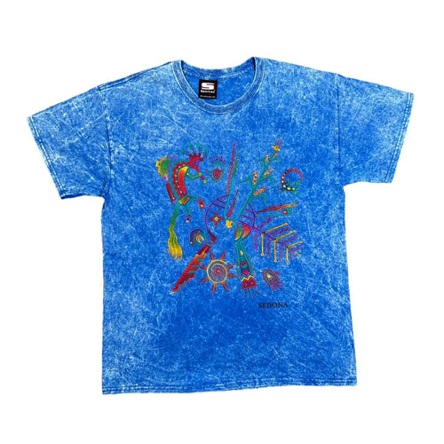 Vintage 90's Sportex SEDONA Native American Cave Art Embroidered Souvenir Tie Dye T-Shirt