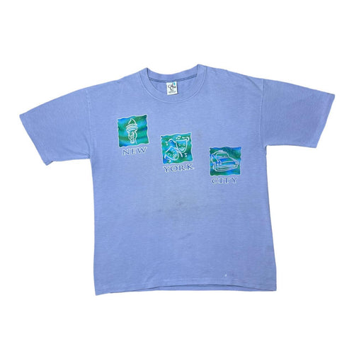 Vintage 90's Cal Cru NEW YORK CITY Souvenir Spellout Graphic Striped Single Stitch T-Shirt