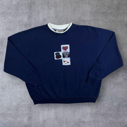 Vintage MC Sportswear Embroidered Christmas Snowman Festive Navy Blue Sweatshirt