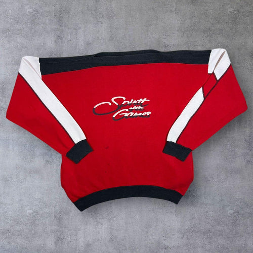 Vintage 90's Spirit Of The Games Spellout Graphic Colour Block Boat Neck Sweatshirt