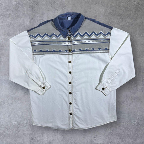 Vintage Forbidden Co. Aztec Pattern Cowboy Western Cotton White Long Sleeve Shirt