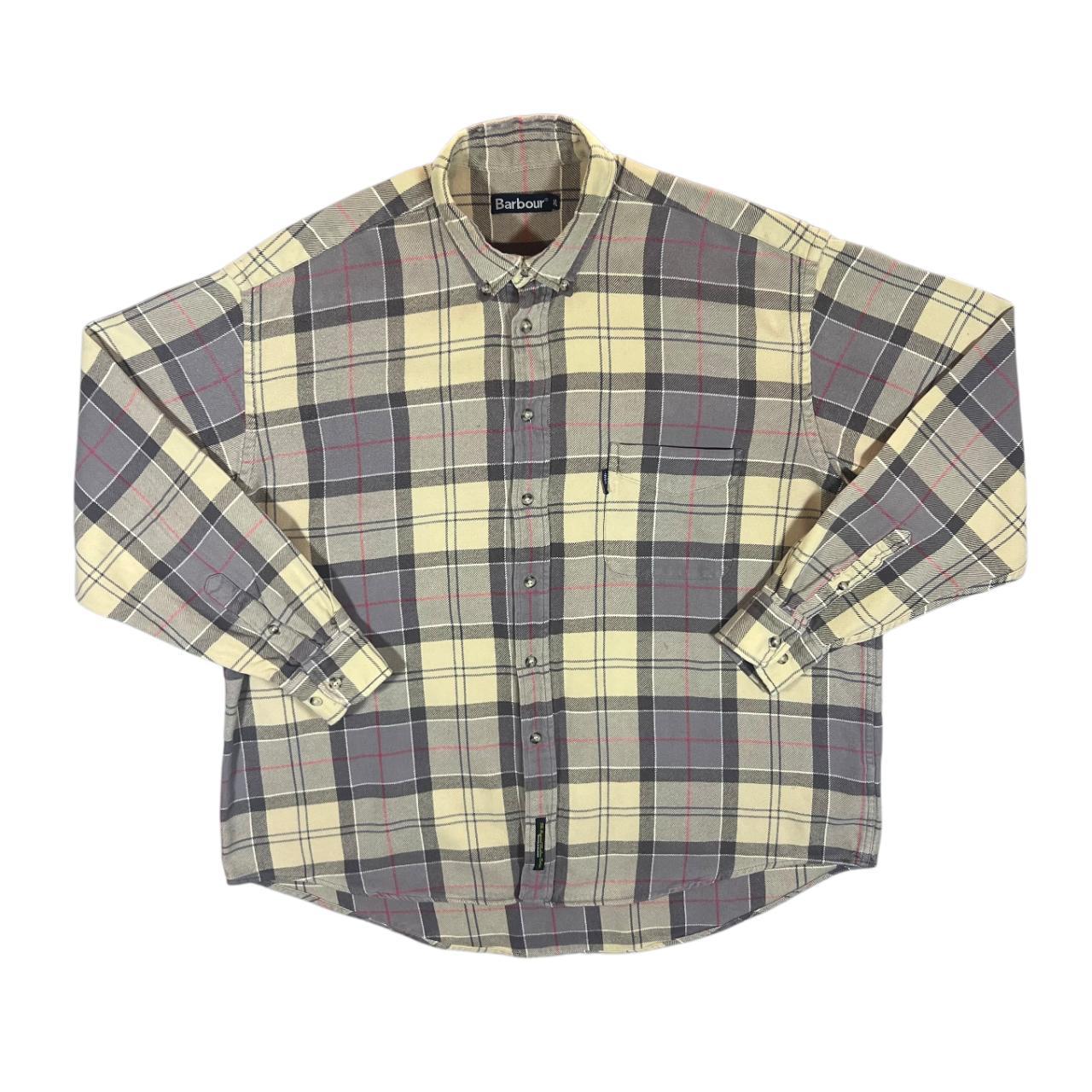 Barbour "Barbour Tartan" Plaid Check Long Sleeve Flannel Cotton Button-Up ShirtSize: XL (See measurements)Colour: Beige/Grey/Red CheckDetail: 100% cotton material.Condition: Light general wear as expectedMeasurements: Pit to Pit: 26”Length: 32"Shoulder to Cuff: 23”#12940