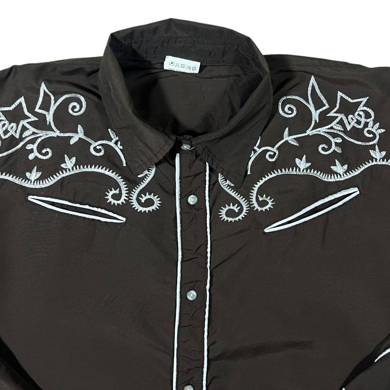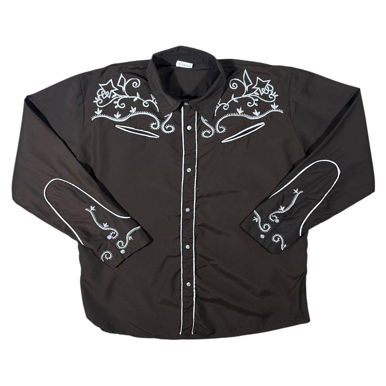 Boland Cowboy Western Embroidered Brown Long Sleeve Polyester Shirt