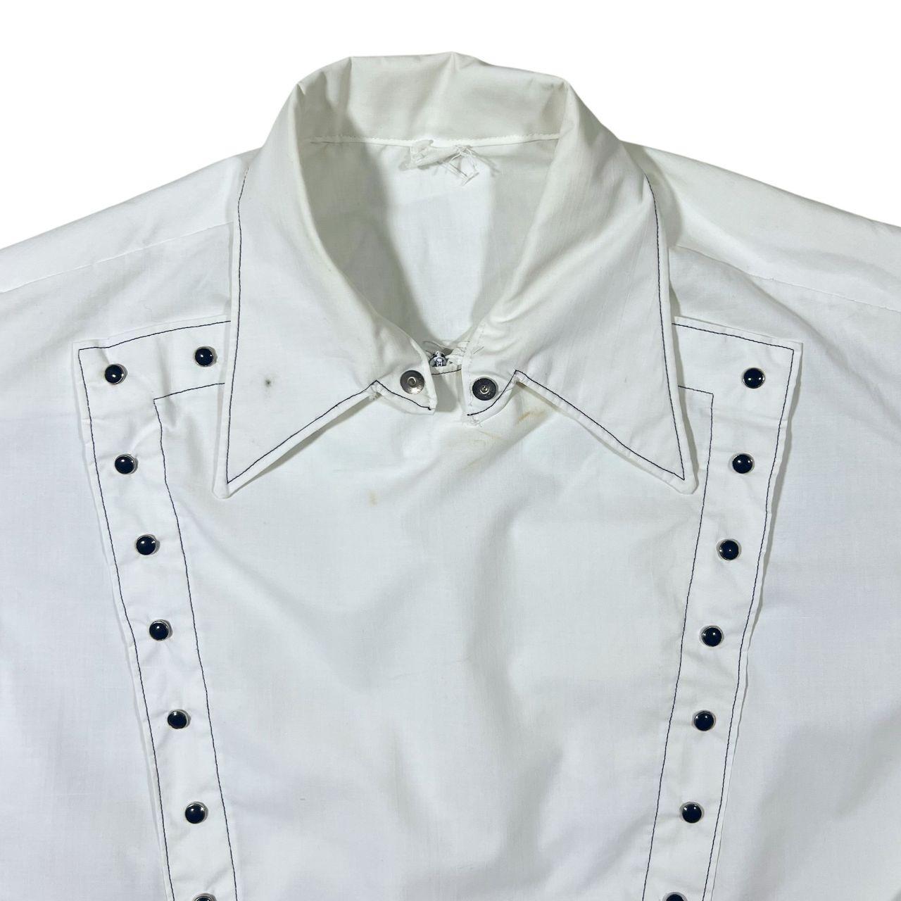 Cowboy Western Punk Style Popper Button Panel Zip White Long Sleeve Shirt